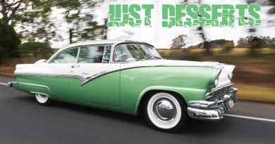 With the bodywork proving to be a little more work than anticipated, Damian was relieved to find that the drive train that accompanied his tudor was in very good nick. The previously freshened 327 Chevy has provided enough trouble free ‘get up and go’ for him to believe the seller was true to his word about its condition. The Edelbrock equipped small block is more than enough for this shoebox to cruise anywhere in style and mated to a T-5 speed it’s easy on the wallet. A limited slip 8” out the back retains its original width and brakes making for a very affordable and reliable combination for this custom.