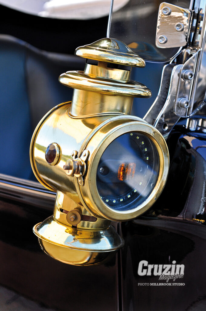 T Bucket trim is reasonably straight-forward but George continued to commit to detail. The hood was an exercise in styling, working with the trimmer to ensure the angular proportions were to his liking. George made the windscreen frame, converted the piston for the column mount – in fact everything apart from trimming the custom made seat in black leather.