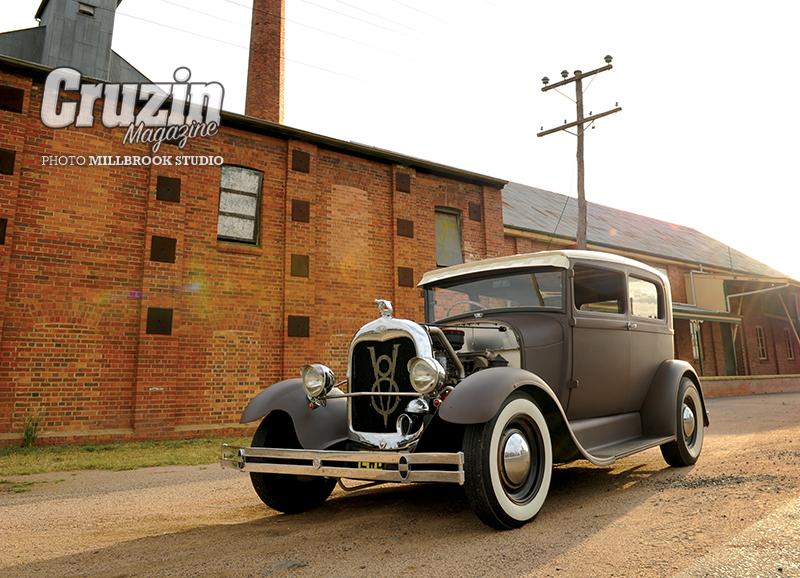Heading for home I knew we had made a strong connection and as the years past the Bakers have become good friends. We catch up when possible and at rod runs or over a bottle of red, and John is the first one on the phone to tell me of his latest project or old tin acquisition. John’s passion for vintage cars and uncanny ability to create notable vehicles that indulge individualism on a thrifty budget is truly inspiring, right from his first attempt at hot rodding, the Windspeed Model A RPU. Raised as a restorer, that honest A was John’s first toe in the water of this obsessive hobby that can easily flood the veins for life after that initial surface tension breach. Since then John has accomplished a string of cool cars including a unique ‘28 Model A sport coupe with pollyhead Chrysler power and currently terrorises Inverell in his equally distinctive, and Mopar motivated, ’34 Plymouth coupe.