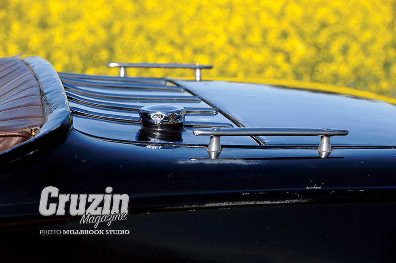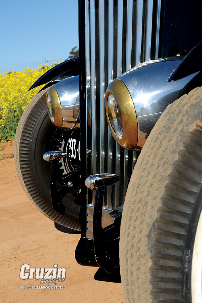 “Most of the parts came from swap meets. I had a new old stock 1932 grill but I also had this Packard grill that I picked up from a swap. I just thought I would have a go and if it didn’t work, I only ruined an old grill. As I didn’t have a showy motor I was always going to have a top so I bartered some electrical work for a mate to roll me a new hood.”