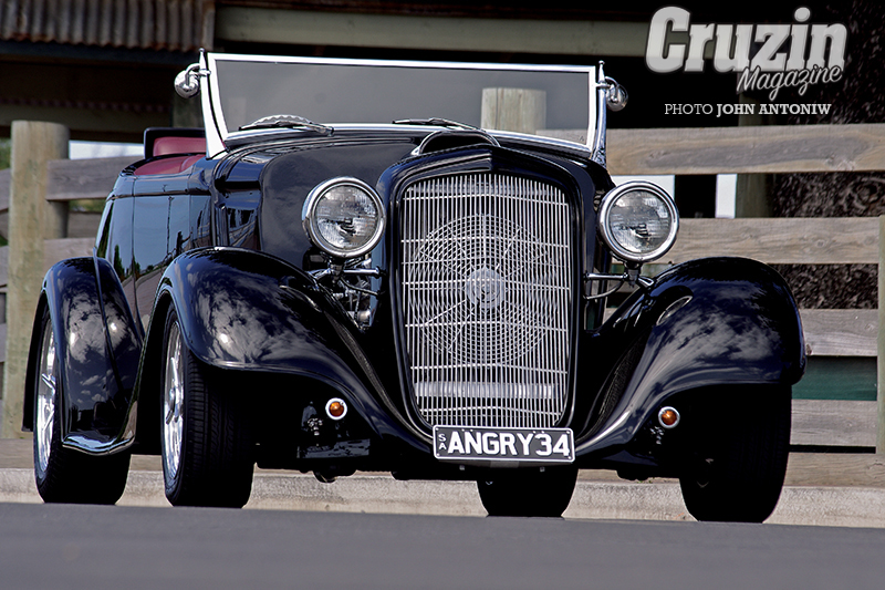With folding coin in his back pocket and a firm plan in his noggin, Mark contacted Rockhampton based company, Custom Fibreglass and ordered one of their 1934 reproduction bodies, complete with running boards, fenders and grill shell. There was no bonnet or roof in Mark’s visionary blueprint so those savings were funnelled into a pair of suitable rails fabricated by Lilow Auto Tech.