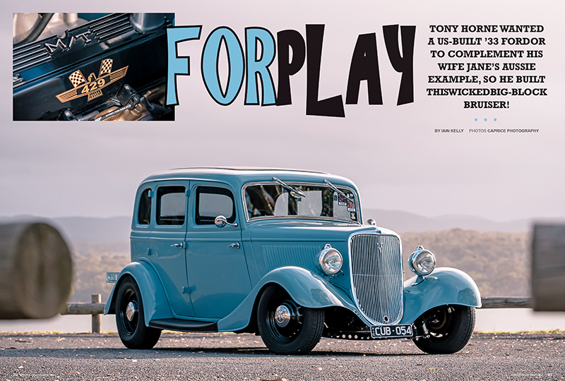 So when did four-doors become boring? Yes, coupes are cool, but sedans are the fabric of Aussie hot rodding, as blokes combine their need for speed with the need to haul the family to car shows and rod runs! Tony and Jane Horne are old hands in the hot rodding scene and are flying the flag for finely finished four-door Fords with the 429-powered ’33 featured on the cover of this issue.