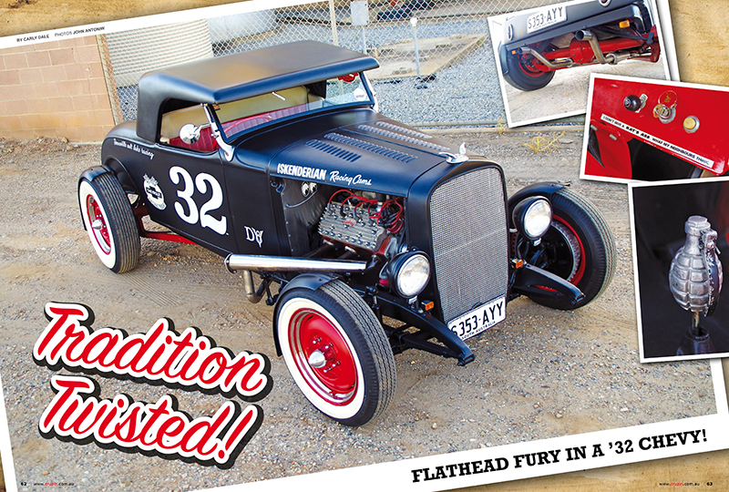 Dave “Div” White’s 1932 Chevrolet roadster is unique with a Ford Flathead under the hood, and from Europe, Gary Knight’s stunning 1950 Buick Sedanette custom. Finally, we head to the shed for Craig Dykes’ 1934 Ford coupe, an old hot rod being rebuilt with a distinctly Aussie vibe.