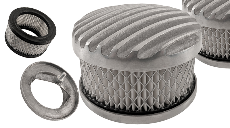 If you’re looking for a nostalgic-style air cleaner to top off your 97 Stromberg or similar 2-5/8-inch neck carby, the Cal Custom finned aluminium 4-inch assembly is the ticket.